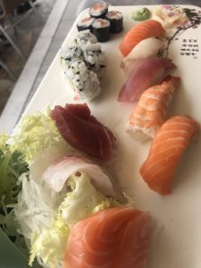 Nach 4800 Kilometern mit Spaghetti Vongole, Pizza, Calamari, Cozze, Dorade ein echter Hochgenuss: Sushi in Rapallo