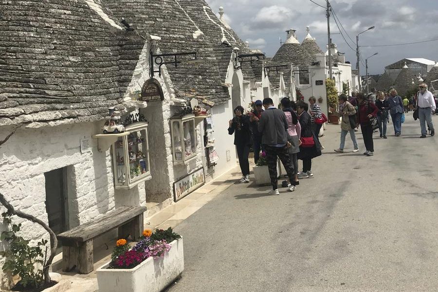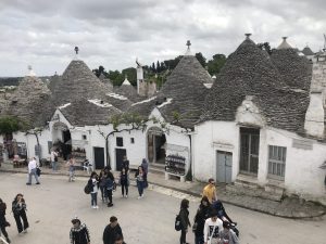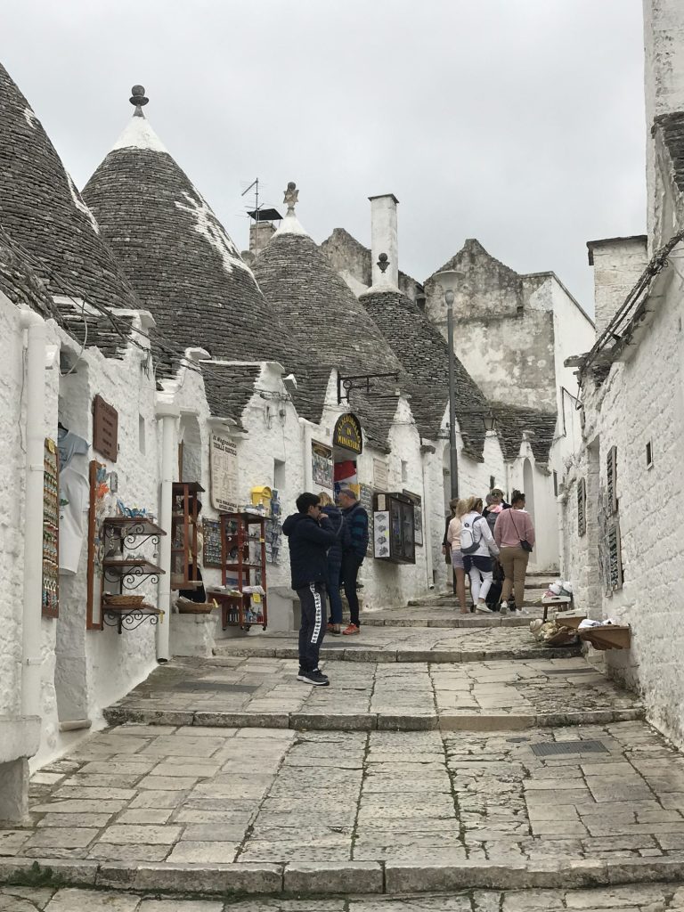 Eine ganz andere Welt erwartet uns in Alberobello – dem berühmtesten Trullidorf! Trulli kannten wir bisher nur als Nudelform und „du Trullo“ als wenig schmeichelhaftes Schimpfwort. Doch nun wissen wir, ein Trullo ist ein kleines rundes Haus aus dem 17. Jahrhundert, viele Trulli bilden ein Dorf!