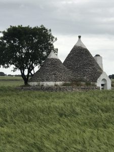 Der Ursprung dieser hübsch anzusehenden Häuser hat einen schlichten Grund: Der Graf Giangirolama II Acquaviva d’Aragona (was für ein Name!) wollte keine Steuern an den König zahlen. Deshalb forderte er seine Bauern auf, diese Häuser zu bauen, die weder Zement noch Mörtel benötigten. Wenn eine königliche Inspektion drohte, wurden die Häuser ruckzuck abgebaut und fast genauso schnell später wieder aufgebaut. Ganz schön praktisch!