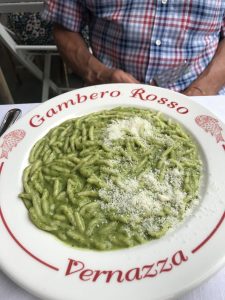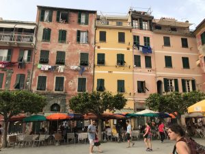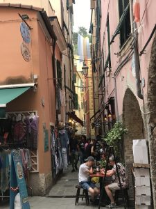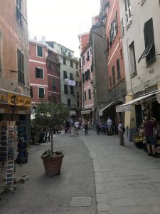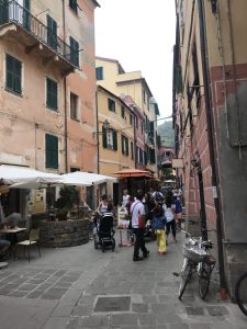 Ausgerechnet in Ligurien, im Cinque Terre, kommen wir auf diese Idee. Zunächst sind wir tapfer und planen einen Tagesausflug mit dem Zug, der uns durch zahlreiche Tunnel an der vermutlich wunderschönen Küste ins Dorf Manarola bringt. Das Boot wäre wohl die bessere Wahl gewesen. Auf dem Rückweg machen wir um etwa 16 Uhr Station in Corniglia Vernazza. Die Tapferkeit weicht langsam aber sicher einem fordernden Hungergefühl. Doch unsere Suche nach einem Restaurant bleibt erfolglos, vor 20 Uhr besteht keine Chance auf einen Tisch. Also fahren wir mit leerem Magen zurück nach Monterosso und schwören uns, erst in Braunschweig wieder zurückhaltender mit den Kalorien zu werden.