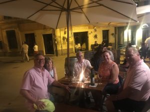 Das Warten hat sich gelohnt, nicht nur wegen des Essens. Rechts von uns sitzt ein australisches Paar, links von uns ein irisches, daneben ein amerikanisches. Während Paul sich mit vollem Mund eher wenig am Gespräch beteiligt, erfreue ich die anderen nach jedem Glas Wein mehr mit meinem miserablen Schulenglisch. Aber alle loben mich für meinen Mut dennoch Englisch zu sprechen und ihr Deutsch sei zudem viel schlechter, trösten sie mich. Satt und zufrieden gehen wir in unser Hotel zurück, für das wir uns aus pragmatischen Gründen entschieden hatten: Es ist die einzige Unterkunft mit einem Parkplatz.