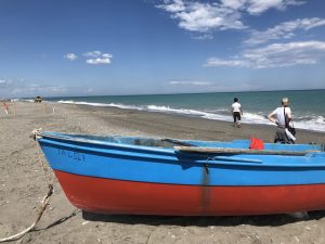 In Tschechien gibt es vielleicht auch keine guten Meerestiere. In Villapiana landen wir in einer liebevoll gestalteten Anlage mit einfachen kleinen Holzhäuschen. Alle Hinweise sind in Italienisch und Tschechisch geschrieben. Eine Urlauberin erzählt, dass sie aus Prag kommt. Leider hat sie ebenso wie die junge Frau an der Rezeption keine Zeit für weitere Fragen. Also ist Fantasie gefragt. Wir stellen uns vor, ein Italiener verliebt sich auf einer Prag-Reise. Er braucht die Sonne und das Meer, sie ein Stück ihrer Heimat – sie kaufen die Ferienanlage und kooperieren mit einem Prager Reisebüro. Klingt doch gut, oder?