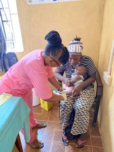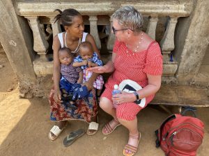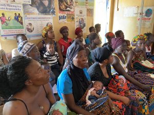 Rund 30 Mütter warten mit ihren Neugeborenen geduldig auf Marie. Marie ist Krankenschwester und Hebamme in der Geburts- und Gesundheitsstation von Brigitte Village, die für rund 10 000 Menschen Anlaufpunkt ist. Marie ist ebenso herzlich wie energisch, sie trifft den richtigen Ton. Bevor sie jedoch mit ihren Erläuterungen zum Thema Stillen beginnt, singen die Mütter erstmal ein Begrüßungslied, fröhlich und lautstark – Singen hat in Afrika eine besondere Bedeutung, so werden auch Besucher gern mit einem Lied begrüßt.