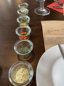 Jörg Günther betreibt die kleine Gewürz-Manufaktur „Temperos“ in Braunschweig, in der man Anregungen und natürlich gleich auch die passenden Gewürze finden kann. (Tipps sind aber auch immer Werbung, aber wir bekommen nichts dafür …). Zu verschiedenen Themen bietet Günther gemeinsam mit seiner brasilianischen Geschäftspartnerin Rita Pimentel auch Kurse an. Wegen Corona sind die Gruppen derzeit schön klein. Wir waren nur fünf, aber acht sind auch erlaubt und wer weiß, bei der nächsten Lockerung vielleicht noch mehr.
