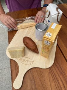 Ach, ne Ecke Parmesan findet sich in unserem Kühlschrank auch immer. Also raspelten wir den Käse dazu, vielleicht waren das 20 oder 30 gr, da kann man ganz flexibel sein oder ihn auch weglassen.